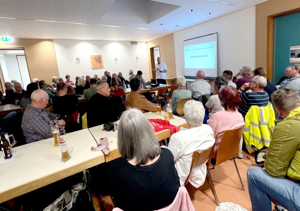 Die Turnhalle des TV 1883 in Bischofsheim füllte sich schnell mit deutlich mehr Gästen, als von den Veranstaltern erwartet, sodass sie zusätzliche Stühle und Bänke aufstellen mussten.